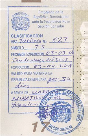 Документы, необходимые для оформления визы в Консульстве Доминиканской республики в Москве: